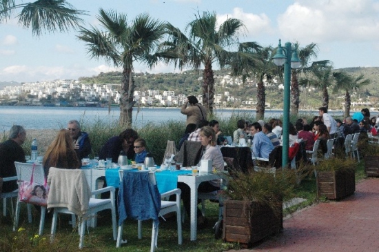 Muğla’nın Bodrum ilçesinde sabah güneşini gören vatandaşlar sahil kenarında bulunan Ambrosia otelde kahvaltıya koştu.