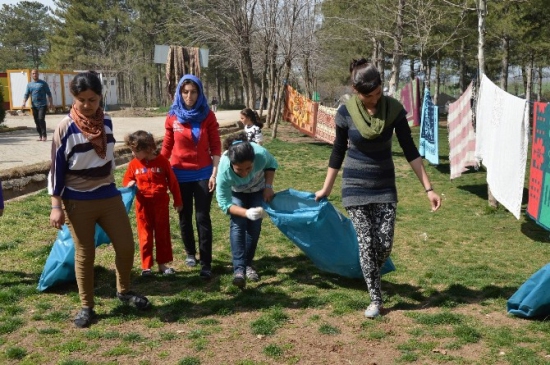 IŞİD saldırıları sonucu Sincar’dan göç edip Diyarbakır Büyükşehir ve ilçe belediyelerinin kendi imkanlarıyla oluşturdukları fidanlık yaşam alanına yerleştirilen Sincarlılar, Diyarbakır Büyükşehir Belediyesi’nin başlattığı çevre temizliği kampanyasına tam destek verdi.