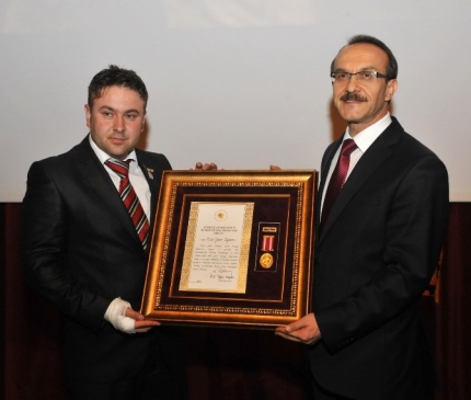 Atatürk Kültür Merkezindeki törene, Vali Seddar Yavuz ve Eşi Selda Yavuz ile birlikte; Garnizon Komutanı J. Albay Yusuf Yalçın, Belediye Başkanı Nurullah Cahan, daire amirleri, askeri personel, emniyet personeli, şehit yakınları, gaziler ve aileleriyle davetliler katıldı. Saygı Duruşu ve İstiklal Marşının okunmasıyla başlayan Devlet Övünç Madalyası Ve Beratı Takdim Töreninde Gazi Yaşar Kıymaz’ın özgeçmişi okundu.