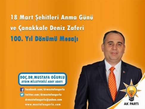 Ak Parti Aydın Milletvekili Aday Adayı Doç. Dr. Mustafa Oğurlu, 18 Mart Çanakkale Zaferi ve Şehitleri Anma Günü dolayısıyla yayınladığı mesajda “1.Dünya Savaşı