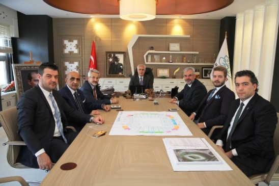 Bursaspor Kulüp Başkanı Recep Bölükbaşı ve Yönetim Kurulu üyeleri, Nilüfer Belediye Başkanı Mustafa Bozbey’i makamında ziyaret ederek, yapımı devam eden stadyum hakkında bilgi verdi. Yeni stadyumun 2015-2016 sezonuna yetiştirilmesi için yoğun çaba harcandığını belirten Başkan Recep Bölükbaşı, Bursasporlu taraftarlarla yeni stadyumda buluşmak için sabırsızlandıklarını kaydetti. Bursaspor’un Süper Lig ve Ziraat Türkiye Kupası’nda hedefe doğru emin adımlarla ilerlediğini ifade eden Bölükbaşı, tüm branşlarda Bursaspor’u marka yapmak istediklerinin altını çizdi. Nilüfer Belediyesi’nin desteklerini her zaman yakından hissettiklerini vurgulayan Bölükbaşı, Başkan Bozbey ve ekibine teşekkür etti.