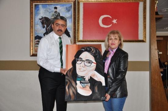 Ressam Meliha Ceyhan Akbıyık, Özgecan Aslan’ın yağlı boya portresini Nazilli Belediye Başkanı Haluk Alıcık’ın makamına getirerek yeni ismi ile Özgecan Aslan Kadın Dayanışma evine verilmek üzere teslim etti.