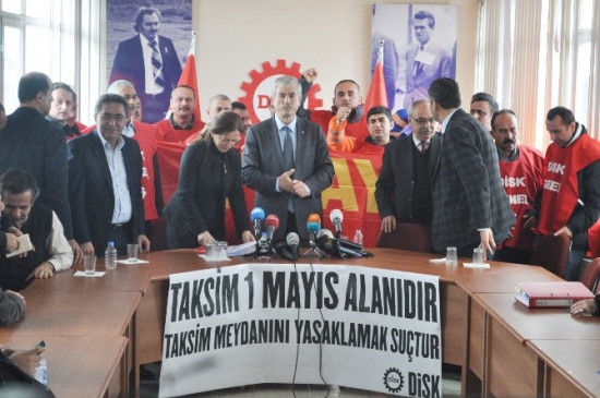 DİSK Genel Başkanı Kani Beko, sendikanın Şişli’deki Genel Merkezi’nde DİSK yöneticileri ile birlikte düzenlediği basın toplantısında, İstanbul Valisi Şahin’in katıldığı bir televizyon programında yaptığı “Toplantı ve gösteri yapılabilecek yerler belli. Taksim bunlardan biri değil” açıklamasını eleştirdi.