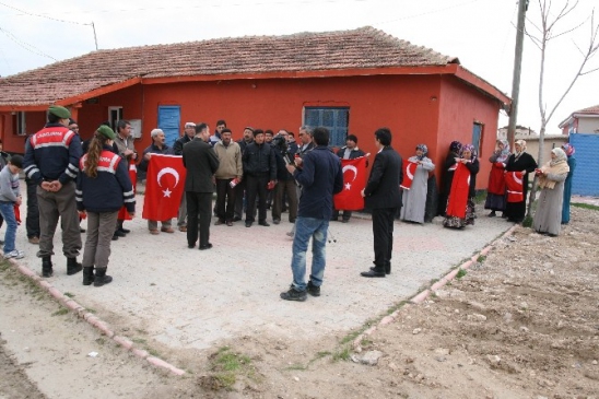 Kendilerine Türk bayrağının hediye edilmesinden dolayı mutluluklarını dile getiren vatandaşlar, jandarmaya teşekkür etti.