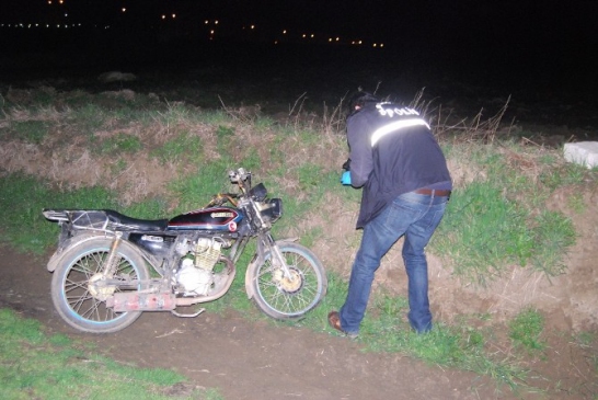 Olay yerine gelen polis ekipleri, başlattıkları geniş kapsamlı arama çalışması neticesinde motosikletin, Londra Asfaltı ile Deveci Yol Ayrımı’nın kesiştiği noktadan 1 km. ileride olduğunu tespit etti. Tarla Yolu’na giren polis ekipleri, aranan çalıntı motosikleti bir tarla kenarında terkedilmiş halde buldu.