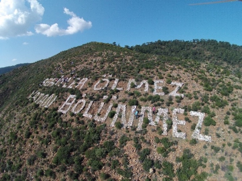 Fethiye Ömer Özyer Anadolu Lisesi öğrencileri, Fethiye’nin hemen her yerinden görünen oyuk tepe mevkiindeki “Şehitler Ölmez, Vatan Bölünmez” yazısını yeniledi.