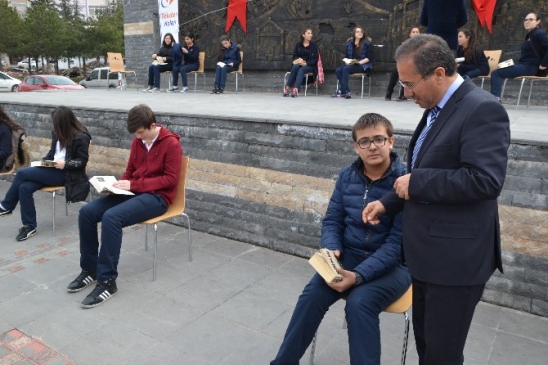 Talas meydanında düzenlenen etkinlikte Tekden Fen Lisesi öğrencileri ’Evlat Ecdadını Okuyor’ projesi kapsamında kitap okudu. Öğrencilerin kitap okuma etkinliğine Talas İlçe Milli Eğitim Müdürü Muhittin Aydoğan’da katıldı. Etkinlikte konuşan Aydoğan, "Tekden Kolejimizin Çanakkale şehitleriyle ilgili programını Talas ilçemizde gerçekleştiriyorlar. Bu ‘evlat ecdadını okuyor’ projesi ve velilerimiz ile öğrencilerimiz aynı kitabı okuyorlar. Çanakkale ruhunu yaşamak ve yaşatmak için böyle bir etkinlik düzenleyen Tekden Kolejini tebrik ediyorum. Biz de Talas olarak buna evsahipliği yapmaktan mutluluk duyuyoruz" dedi.