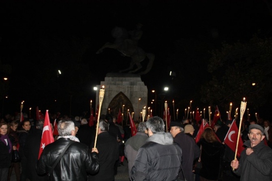 Atatürk Anıtı önünde saygı duruşunun yapılması ve İstiklal Marşı’nın okunmasının ardından ‘fener alayı’ yürüyüşü sona erdi.