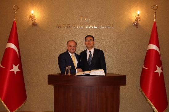 Güney Kore Cumhuriyeti’nin Ankara Büyükelçisi Yunsoo Cho, Mersin Valisi Özdemir Çakacak’ı ziyaret ederek, Güney Koreli iş adamlarının Mersin ile işbirliğini geliştirebilmeleri için Çakacak’tan destek istedi.