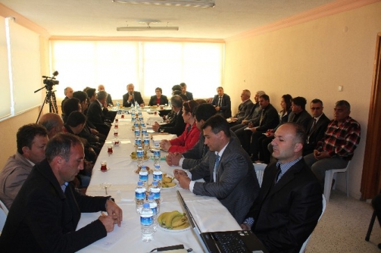 Heyet ilk olarak Aydıncık ilçesinde muhtarlarla bir araya geldi. Aydıncık’ta yapılması planlanan hizmetlerle ilgili bilgiler verildiğini ifade eden MESKİ Genel Müdürü Turgut Aybak, toplantıları sürdüreceklerini ve bilgileri paylaşmaya devam edeceklerini kaydetti. Mahallelerin su ile kanal problemlerinin ele alındığı toplantıda konuşan Aybak, muhtarların halkın sesi olduğuna inandıklarını kaydederek, sorunların çözümü noktasında da birer çözüm ortağı olarak gördüklerini belirtti. Mersin Büyükşehir Belediye Başkanı Burhanettin Kocamaz’ın, yerinde hizmet prensibi doğrultusunda ilçelerde muhtarlarla bir araya gelerek bilgilendireceklerini altını çizen Aybak, Aydıncık ilçesi olmak üzere bütün ilçelerde 2015 yılı içerisinde, birçok problemin aşıldığı bir yıl olacağını, bundan sonra muhtarlar ile daha fazla bir araya geleceklerini ve sorunları birinci ağızdan dinleyeceklerini söyledi.