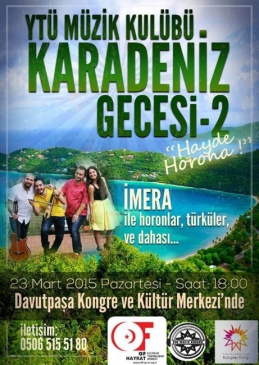 Yıldız Teknik Üniversitesi Müzik Kulübü tarafından, sosyal sorumluluk projelerine destek amaçlı düzenlenen gecede, tulum, kemençe ve İmera Grubu Karadeniz rüzgarları esecek.