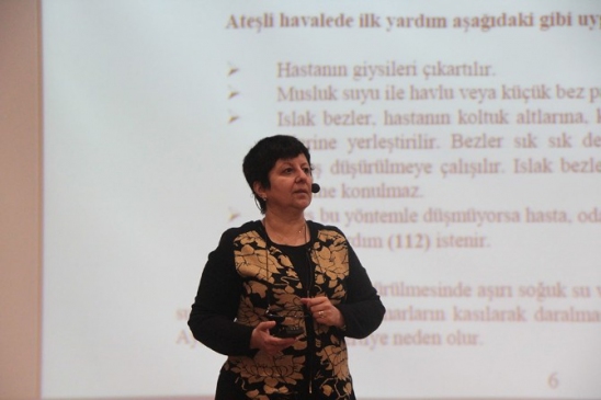 Sakarya Büyükşehir Belediyesi Sosyal Hizmetler Dairesi Başkanlığı tarafından düzenlenen Kadın Gelişim Akademi eğitimleri, ‘İlkyardım’ konulu konferans ile devam etti. Sosyal Gelişim Merkezi Konferans Salonu’nda gerçekleştirilen programda İlkyardım Uzmanı Huriye Toker, temel ilk yardım eğitimi ile ilgili katılımcılara ayrıntılı bilgiler verdi. Toker “Olay yerinde yapılan ilkyardımlar ağır yaralılarda ölüm riskini yüzde 20 azaltır. Sağlık hizmetleri ekibi olay yerine geldiğinde de bu oran yüzde 50 azalır. Bir vakayla karşılaştığımızda soğukkanlı olmak ve gerekli müdahaleyi yapmak durumundayız. Bayılan bir kişinin bilinç kaybı yaşayıp yaşamadığını anlayabilmeliyiz. Böyle bir durumla karşılaştığımızda bayılan kişinin ayaklarını yerden 30 santimetre kaldırmalı, solunumu daha rahat almasını sağlamalıyız” diye konuştu.