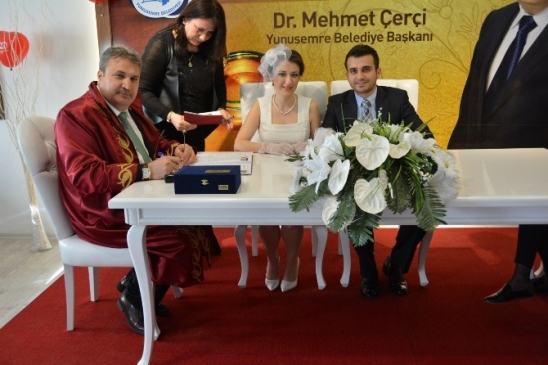 Tuna, Yunusemre Belediye Başkanı Dr. Mehmet Çerçi’nin nikah konusuna çok önem verdiğini vurgulayarak, “Nikah Memurluğu olarak 2014 yılında 853 nikah kıydık. 25 nikahımızı da Başkanımız Sayın Dr. Mehmet Çerçi kıydı. 2015 yılı içerisinde de yoğun bir şekilde nikah kıymaya devam ediyoruz. Kendi bilgisayar sistemimizi oluşturuyoruz. Vatandaşlarımızdan sadece sağlık raporlarını almalarını ve fotoğraflarını ayarlamalarını istiyoruz. Başkanımız Mehmet Çerçi, nikahı kıyılan her çifte hediye takdim ediyor. Belediye Başkanımız Sayın Dr. Mehmet Çerçi, yeni evlenecek çiftlere çok önem vermektedir. Bizde arkamızdaki bu güç ile yapabileceğimiz en iyi hizmeti vermek için çalışmalarımıza devam edeceğiz.” şeklinde konuştu.