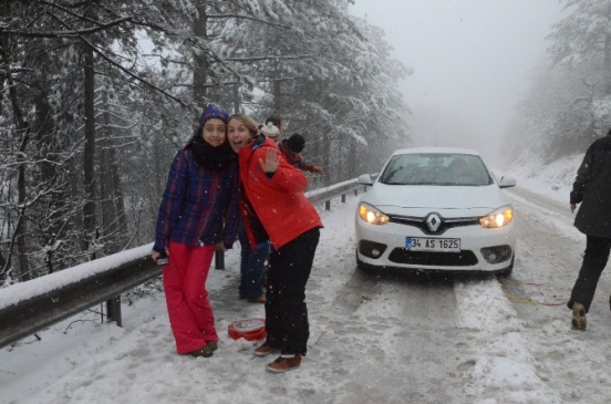 Uludağ’a kiraladıkları araçla çıkmak isteyen Rus turistler ise, mart ayında bu kadar kar beklemediklerini ifade ederek, “Uludağ’a çıkacağız. Aracımızda kar lastiği yokmuş. Şimdi zincir takıyoruz. Uludağ çok güzel” diye konuştu.