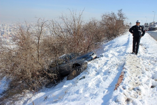 Kayseri’de, meydana gelen trafik kazasında kadın sürücünün kullandığı otomobil, buzlanma nedeniyle kontrolden çıkarak şans eseri uçurumda bulunan ağaçlara takılarak durabildi. Kazada otomobil sürücüsü ve kızı hafif şekilde yaralandı.
