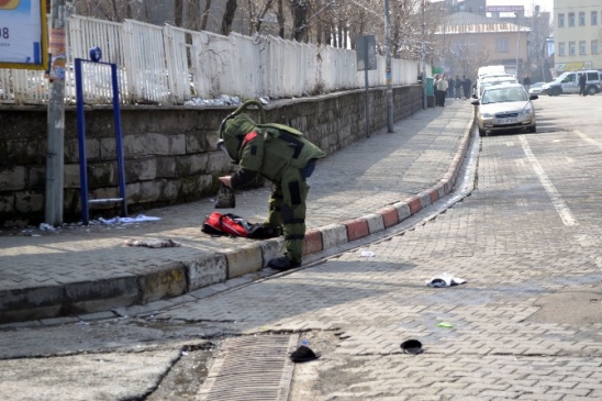 Atatürk Bulvarı üzerinde bulunan Atatürk İlkokulu’nun bahçe duvarının üzerine bırakılan şüpheli çantayı fark eden vatandaşlar, polise haber verdi. Gelen polis ekipleri ilk olarak bölgeyi trafiğe kapatıp güvenlik şeridi çekti. Muş Emniyet Müdürlüğü’nde görevli bomba imha uzmanları bölgeye gelip, incelemelerde bulundu. Özel kıyafetini giyen bomba imha uzmanı, çantayı patlattı. Patlatılan çantanın içerisinden terlik, tişört ve eşofman takımı çıktı.
