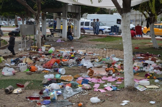 Bu arada karşı koyanlara da biber gazlı müdahale etti. Seyyar satıcılar da taş ve sandalyelerle karşı koymaya çalıştı. Yaşanan arbedede iki çevik kuvvet polisi kafalarına taş gelmesi sonucu yaralanırken iki seyyar satıcı da yaralandı.