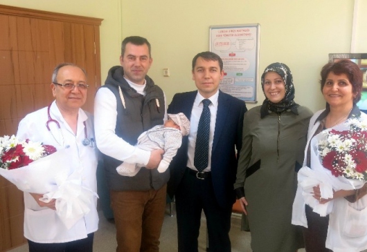Hem serviste hem yoğun bakımda yattıkları süreç içerisinde doktorların kendilerine karşı olan yaklaşımından dolayı çok mutlu olduklarını ve doğum sürecini atlattıktan sonra kendilerine yardımcı olan doktorlara teşekkür ziyaretine geldiklerini söyleyen baba Fatih Kotan ile anne Emel Kotan, hastanede ziyaret ettikleri Çocuk Hastalıkları Uzmanı Dr. Şahin Gürbüz ve Kadın Hastalıkları Uzmanı Dr. H. Filiz Kaya’ya teşekkür edip çiçek takdim ettiler.