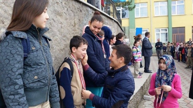 Fatih İmam Hatip Ortaokulu’nda katı atık sistemine katkı sağlayan öğrencilere madalya veriliyor. Okul müdürü Mehmet Korul, öğrencilere teşekkür ederek Madalya Günleri’nin devam edeceğini söyledi.