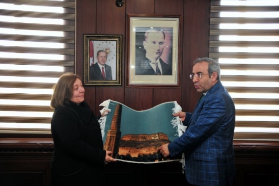 Konuşmaların ardından Rektör Prof. Dr. Battal’a üzerinde Erbil’den görüntülerin olduğu bir halı ile plaket sunuldu. Rektör Battal ise heyete içinde çeşitli hediyeler bulunan çantalar verdi.