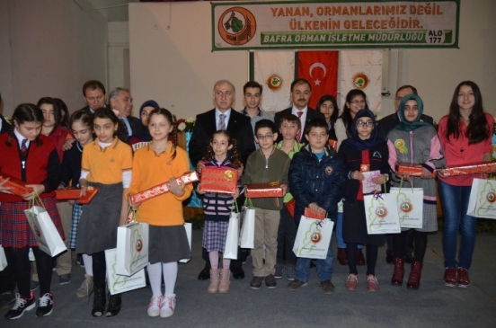 Saygı duruşu ve İstiklal Marşı’nın ardından Bafra Orman İşletme Müdürü Ahmet Ulukan günün anlam ve önemini belirten bir konuşma yaptı. Orman Haftası etkinlikleri kapsamında okullar arası yapılan şiir, kompozisyon ve resim yarışmasında birinci olan öğrencilere Vali İbrahim Şahin tarafından ödülleri verildi. Ödül alan 18 öğrencinin kız olması nedeniyle Vali Şahin, "18 yavrumuz ödül aldı. 4’ü erkek, 14 tanesi kızdı. Erkeklerin de onlarla yarışması lazım. Pozitif ayrımcılık yapalım ama belli kız öğrencilerimiz daha yoğun bir şekilde çalışıyorlar. Daha başarılı oluyorlar. Erkek öğrencilerimizin de bunu sağlaması lazım. Hem erkek hem de kız öğrencilerimizin çalışması gerekiyor ki sadece Türkiye’de ki eğitim açığını değil, dünyadaki yetişmiş insan ihtiyacını karşılayalım” dedi.