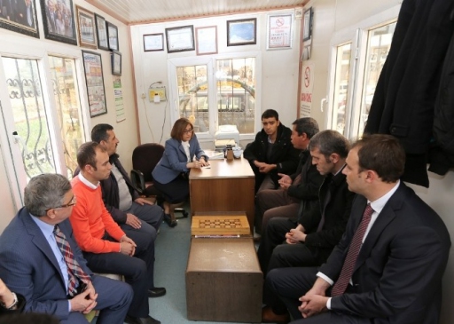Durakta taksicilerle çay içen Şahin, onların sorun ve sıkıntılarını dinledi. Taksicilerden çalışma koşulları hakkında bilgi alan Şahin, durak ve taksicilerin sorunlarının giderilmesi noktasında belediye olarak her türlü desteği vermeye hazır olduklarını kaydetti.