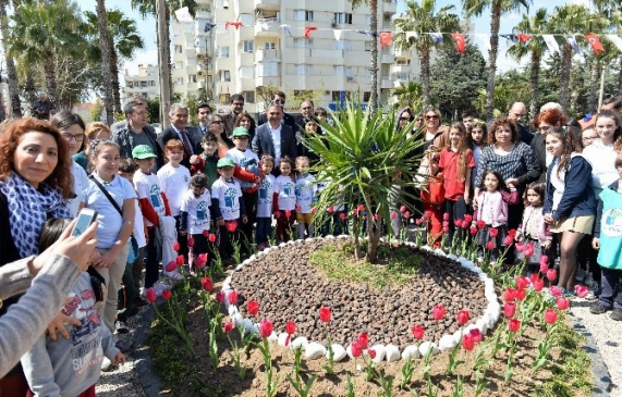 Çevre Koruma ve Kontrol Müdürlüğü bahçesinde yapılan ‘Çiçek-Çocuk Bahçesi’, Başkan Ümit Uysal, Demircikara Mahalle Muhtarı Ayşe Peçen, Türkiye Çevre Eğitim Vakfı Koordinatörü Lokman Atasoy, meclis üyeleri, birim müdürleri ve eko okullardan gelen öğrencilerin katılımı ile hizmete açıldı.