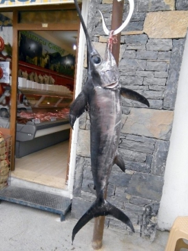 Kılıç balığı parçalanarak kilo ile satışa sunuldu.