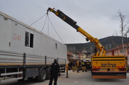 Başbakanlık Acil Afet ve Acil Durumu Yönetimi Başkanlığı tarafından gönderilen ve Antalya Büyükşehir Belediyesi tarafından tırlara yüklenerek Korkuteli’ne getirilen konteynerler, Sülekler halkına teslim edilmeye başladı.