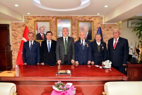 Kütahya Muharip Gaziler Derneği Başkanı Şaban Başoğul ve yönetim kurulu üyeleri, Belediye Başkanı Kamil Saraçoğlu’nu makamında ziyaret etti.