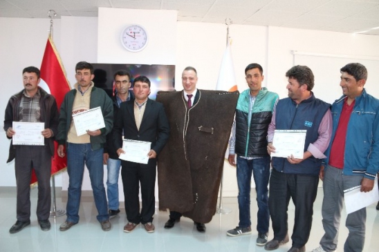 Konuşmaların ardından üzerine çoban kepeneği giyen Kaymakamı Mehmet Ali Akyüz ve protokol tarafından 50 kursiyere sertifikaları verdi.