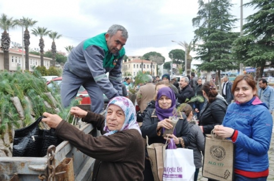 Belediye Başkanı Mahmut Badem ise, Amacımız ağaçlarımızı kurutmamak yada her kuruyan ağacın yerine yenisini yetiştirmektir. Üreticimizi yaşadığı yerde kazancını gelirini artırmaktır. Bugünde fidan dağıtımı yapılıyor. Bundan sonra da bu çalışmalar devam edecektir" dedi.