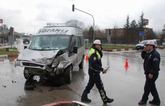 Edinilen bilgiye göre, Tokat-Turhal karayolu üzerinde bulunan sanayi kavşağında Duran Coşkun (46) idaresindeki minibüs kavşaktan diğer istikamete geçen Taci Sert idaresindeki 60 HT 321 plakalı kamyona çarptı. Çarpmanın etkisi ile minibüste bulunan bir yolcu hafif şekilde yaralanırken, 112 Acil Yardım ekipleri tarafından Tokat Devlet Hastanesi’ne sevk edildi.