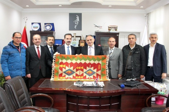 Milli Eğitim Müdür Ahmet Kafalı, eğitime verdiği destekten dolayı tüm öğretmenler, öğrenciler ve veliler adına Başkan Esat Öztürk’e kilim hediye etti.