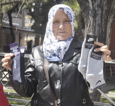 “Çorapları Afyonkarahisar’dan alıyorum, 8 tanelik paketten 4 TL kar kalıyor. Günde 7 paket satıyorum, 20-25 TL günlük para kalıyor. Çorabı Umreye gitmek için satıyorum. 1-1,5 yıl içerisinde bir Umre parası biriktiriyorum. Sattığım paradan yiyorum da, misafirim de geliyor, eve harçlık da yapıyorum. Kredi borcumuz var bir yandan. Üç senedir çorap satıyorum. Bu gittiğim üçüncü Umrem. Çorapla birlikte sabahları şoförlere bükme (börek) satıyorum. İkindi saatlerinde tulumba tatlısı da satıyorum. Çoraptan günlük 20 TL para kalıyor. Bir Umre ziyareti de 3 bin 100 TL’ye mal oluyor. Bu sene eşimi de Umreye götürdüm. İnşallah bu sene hac içinde yazılacağım.”