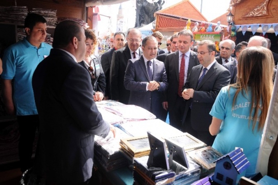 Cumhuriyet Meydanı’nda açılan sergiye Adalet Bakanlığı Müsteşar Yardımcısı Yüksel Kocaman, Antalya Valisi Muammer Türker, Ceza ve Tevkifevleri Genel Müdürü Enis Yavuz Yıldırım, Ceza İnfaz Kurumları İşyurtları Daire Başkanı Vehbi Kadri Kamer, Antalya Cumhuriyet Başsavcısı İbrahim Dağlı, cezaevi müdürleri ve personelleri katıldı. Açılışta konuşan Antalya Cumhuriyet Başsavcısı İbrahim Bağcı, Ceza İnfaz Kurumları’ndaki hükümlü ve tutukluların ürettikleri ürünlerin tanıtımı ve satışı amacıyla sergi düzenlendiğini kaydetti. Ceza ve Tevkif Evleri Genel Müdürlüğü koordinasyonu ile 225 ceza infaz kurumunda İş Yurtları Daire Başkanlığı bünyesinde atölyelerin kurulduğunu aktaran Bağcı, bu atölyelerde 100 farklı iş kolunda üretim yapıldığını söyledi. Atölyelerdeki çalışmaların gönüllülük esasına göre olduğunu ve ticari amaç güdülmediğini belirten Bağcı, "Hükümlülere çalışmaları karşılığında ücret ödeniyor ve sigortaları yapılıyor. Hükümlüler gelir elde ederken, zamanlarını üreterek, çalışarak geçiriyorlar. Hem ailelerine hem de ülke ekonomine katkı sağlıyorlar" dedi.