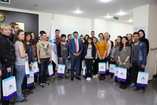 Letonya, Romanya, İtalya ve Bulgaristan gibi dünyanın birçok ülkesinden farklı insanların buluştuğu ve araştırmalar yapmak üzere Şanlıurfa’ya gelen 50 kişilik öğrenci heyeti, Eyyübiye Belediye Başkanı Mehmet Ekinci ile 2 saat süren bir toplantı gerçekleştirdi. Komşu ülke Suriye’de yaşanan insanlık dramından kaçarak Türkiye’ye yerleşen mültecilerin büyük bir bölümünün Şanlıurfa’da barındırıldığının bilincini yaşadıklarını belirten heyet, Eyyübiye Belediye Başkanı Mehmet Ekinci’den mültecilere yapılan yardımlar hakkında bilgi aldı.