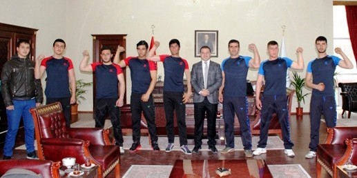 Erciş Bilek Güreşi Takımı Antrenörü İzzet Şevketoğlu ile sporcular, Kaymakam Mehmet Şirin Yaşar’ı makamında ziyaret etti. Takım olarak 31 Mart - 03 Nisan 2015 tarihleri arasında, Antalya Kemer’de yapılacak olan Türkiye Bilek Güreşi Şampiyonası’na katılacaklarını belirten sporcular, ilçede ilk kez bir bilek güreşi turnuvasına katılacaklarını belirterek, şampiyona öncesinde Kaymakam Yaşar’ı ziyaret edip desteklerinden ötürü teşekkürlerini ettiler.