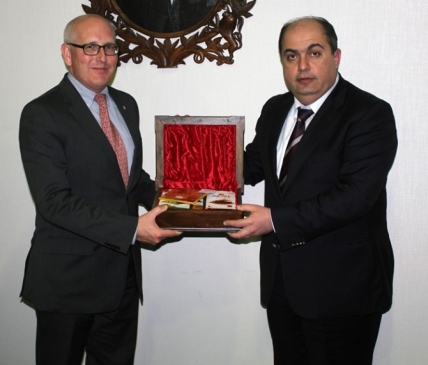Konuşmaların ardından Başkan Karaküçük Ankara Almanya Büyükelçiliği Ticaret Müsteşarı Christhop Hailler’e yöreye ait ceviz işlemeli sandık hediye etti.