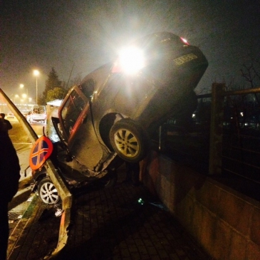 Bursa’da kontrolden çıkan otomobil önce kaldırıma ardından kongre merkezinin duvarına çarptı. Havalanan otomobil trafik levhasının bulunduğu direğin üzerine düştü. Emniyet kemeri takmadığı için sürücü mahallinden yan koltuğa fırlayan sürücü camdan giren direğin altında sıkışmaktan bu sayede kurtuldu. Polis ekipleri, milyonda bir karşılaşılan kaza sonrası sürücüleri yine de emniyet kemerini takmaları hususunda uyardı.