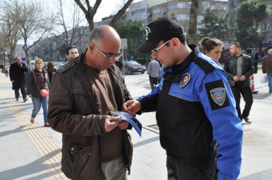 Suç ve suçluyla mücadelede vatandaşı bilgilendiren Sakarya İl Emniyet Müdürlüğü Toplum Destekli Polislik Şube Müdürlüğü ekipleri halkın mağdur olmaması için bilgilendirme çalışmalarını bütün hızıyla sürdürüyor. Son zamanlarda çok hızlı artış gösteren telefon dolandırıcılarına karşı polis ekipleri de harekete geçti. Bastırılan broşürlerle halkın kalabalık olduğu yerlerde ve bankalara ait ATM cihazlarında işlem yapan vatandaşları dolandırıcılara karşı uyaran polisler, ayrıca halkın dolandırıcılara karşı almaları gereken önlemleri de titizlikle sıraladılar. Yetkililer, “Polis, savcı, hakim vb. gibi sıfatlarla sizi arayarak kendilerini kamu görevlisi olarak tanıtan kişiler çeşitli bahanelerle para taleplerinde bulunuyor bunlara inanmayın. Hiçbir savcı, polis, hakim veya kamu görevlisi sizi arayarak böyle taleplerde bulunmaz. Vatandaşlardan ricamız bu tür olaylara inanmasın ve hemen telefonu kapatıp 115’i arayıp ihbar etsinler” diyerek vatandaşları uyardı.