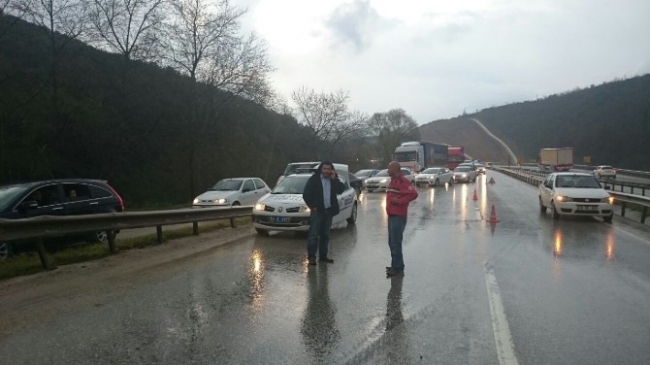 Bursa'nın Orhangazi ilçesinde bugün saat 18:30 sularında yaşanan kazada, yağmur nedeniyle kayganlaşan yolda seyreden Hasan Arık yönetimindeki TIR, direksiyon hakimiyetini kaybederek yan döndü. Bu durum, Bursa-Yalova yolunun trafiğe kapanmasına neden oldu. Şans eseri kazada can kaybı veya yaralanma yaşanmazken, sürücüler korku dolu anlar geçirdi. Olay yerine gelen trafik ekipleri, yolda güvenlik önlemleri alırken, TIR'ın kaldırılması için çalışmalar devam ediyor.