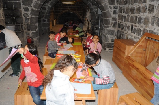 Diyarbakır'ın Sur ilçesindeki Resim Atölyesi'nde aktif bir şekilde çalışan çocuklar, yakın zamanda açılacak olan Sokak Sanat Atölyesi ile Suriçi ve Alipaşa'daki binaların dış cephesini boyamak için hazırlık yapıyor. Diyarbakır Büyükşehir Belediyesi'nin desteklediği bu projede, 26'sı kız toplam 30 çocuk, Kültür ve Turizm Daire Başkanlığı'nın düzenlediği resim atölyesinde bir araya geliyor. Çizgi ve renklerin hayat bulacağı bu çalışmada, çocuklar sokak sanatını deneyimleyecek.