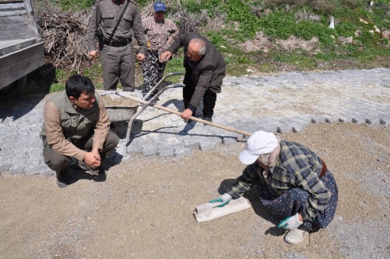 Kilitli parke taşlar Ürgüp ilçesine bağlı köylerde köylüler tarafından döşeniyor. Köylerini güzelleştirmek için meydanlarda genç yaşlı, kadın erkek demeden çalışan köylüler imece usulüyle hiçbir ücret talep etmeden çalışarak adeta ustalara taş çıkartıyor.