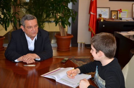 Kuşadası'nda, İkiçeşmelik İlköğretim Okulu öğrencileri, "Başkanımızı tanıyalım" başlıklı ödevlerini uygulamalı olarak gerçekleştirmek için Kuşadası Belediyesi'ni ziyaret etti. Randevu alarak belediye binasına gelen öğrenciler, başkanlık makamında Kuşadası Belediye Başkanı Özer Kayalı ile birebir görüşme fırsatı buldu. Başkan Kayalı, öğretmenlerinin yönlendirdiği sekiz soruya yanıt vererek öğrencilerin merak ettiklerini cevapladı. Ayrıca, ödevlerini tamamlayan öğrencilere kitap hediye ederek onları teşvik etti.