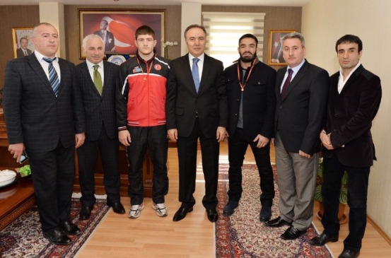 Erzurum'da, güreşte bronz madalya kazanarak ülkemizi onurlandıran Murat Ertürk ve Judo Grand Prix’te gümüş madalya elde eden Hasan Vanlı, Vali Altıparmak tarafından makamında kabul edildi. Vali, her iki sporcuyu altın ile ödüllendirerek başarılarından dolayı tebrik etti. Erzurum, birçok spor dalında elde ettiği başarılarla dikkat çekerken, Murat Ertürk'ün Polonya'da düzenlenen U23 Yaş Serbest Güreş Avrupa Şampiyonası’nda 74 kiloda bronz madalya kazanması ve Hasan Vanlı'nın Samsun'daki Judo Grand Prix Turnuvası'nda ikinci olması, kentin spor alanındaki başarısını pekiştirdi. Ayrıca, Erzurum Gençlik Hizmetleri ve Spor İl Müdürü Fuat Taşkesenligil ile diğer yetkililer de sporcuları tebrik etti. Vali Altıparmak, sporcuların gelecekte Avrupa, Dünya ve Olimpiyatlarda şampiyonluk kürsüsüne çıkacaklarına inandığını belirtti.