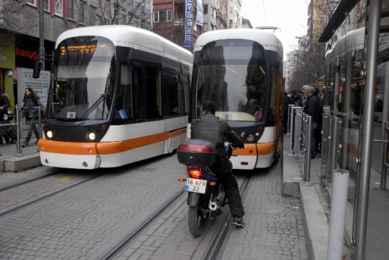 Eskişehir’de son zamanlarda yaşanan kazalarından adeta ders çıkarmayan bazı vatandaşlar, tramvay hatları üzerinde yürümeye devam ediyor. Eskişehir ulaşımında büyük kolaylık sağlan tramvaylar, son zamanlarda vatandaşların hatalarından kaynaklanan birçok kazaya neden oldu. Yaşanan kazalardan ders çıkarmayan Eskişehirli bazı vatandaşlar, tramvay hatları üzerinde gitmeye devam ediyor. Yapılan uyarıları gözardı eden kimi vatandaşlar, yaya, bisiklet ve motosiklet ile ray güzergahını kullanarak kazalara adeta davetiye çıkarıyor.