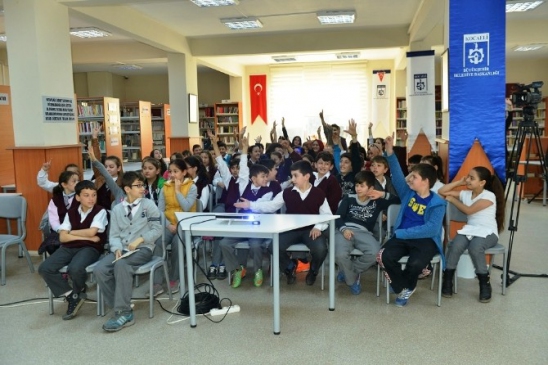 Kocaeli Büyükşehir Belediyesi Halk Kütüphanesi, Kütüphane Haftası kapsamında çeşitli etkinlikler düzenlemeye devam ediyor. Bu yılki etkinliğe ünlü yazar ve şair Mevlana İdris, Mimar Sinan Ortaokulu öğrencileriyle bir araya geldi. Renkli bir soru-cevap formatında gerçekleşen söyleşide, İdris çocuklara hayallerinden vazgeçmemelerini öğütledi. İdris, “Şimdi size sorular soracağım. Eğer onaylamadığınız soru olursa istediğiniz kadar bağırın. Onayladıklarınızı da alkışlayın” diyerek katılımcılara eğlenceli anlar yaşattı.