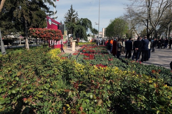 Sakarya Büyükşehir Belediyesi tarafından düzenlenen Geleneksel Lale Dağıtım Töreni, AKM önünde gerçekleştirildi. Törene, Büyükşehir Belediyesi Başkanvekili Adem Kümbet, Genel Sekreter Yardımcısı Ayhan Kardan ve Çevre Koruma ve Kontrol Dairesi Başkanı Türker Vardar'ın yanı sıra çok sayıda vatandaş katıldı. Açılış konuşmasını yapan Türker Vardar, “Hedefimiz; Sakarya’yı birlikte güzelleştirmek. Dağıttığımız lale soğanlarının her birinin vatandaşlarımızın yüreğine sevgi, yüzüne tebessüm getirmesini diliyorum” dedi. Vardar'ın ardından, Büyükşehir Belediyesi Başkanvekili Kümbet, Genel Sekreter Yardımcısı Kardan ve Çevre Koruma ve Kontrol Dairesi Başkanı Vardar, katılımcılara lale soğanı hediye etti.