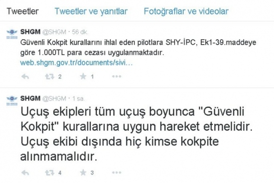 A Milli Takım kaptanı Arda Turan, Lüksemburg ile oynanan hazırlık maçının ardından dönerken, uçağın kokpitine girerek anons yaptı. Turan, kalkış için motor çalıştıran uçakta ilk anonsu yaparak, 37 bin feet yükseklikten yolcularına iyi uçuşlar diledi. Bu durumun basında yer almasının ardından Sivil Havacılık Genel Müdürlüğü, sosyal medya üzerinden bir uyarı yayımladı. Uyarıda, "Uçuş ekipleri tüm uçuş boyunca 'Güvenli Kokpit' kurallarına uygun hareket etmelidir. Uçuş ekibi dışında hiç kimse kokpite alınmamalıdır" ifadeleri kullanıldı. Ayrıca, bu kuralları ihlal eden pilotlara 1000 TL para cezası uygulanacağı hatırlatıldı.
